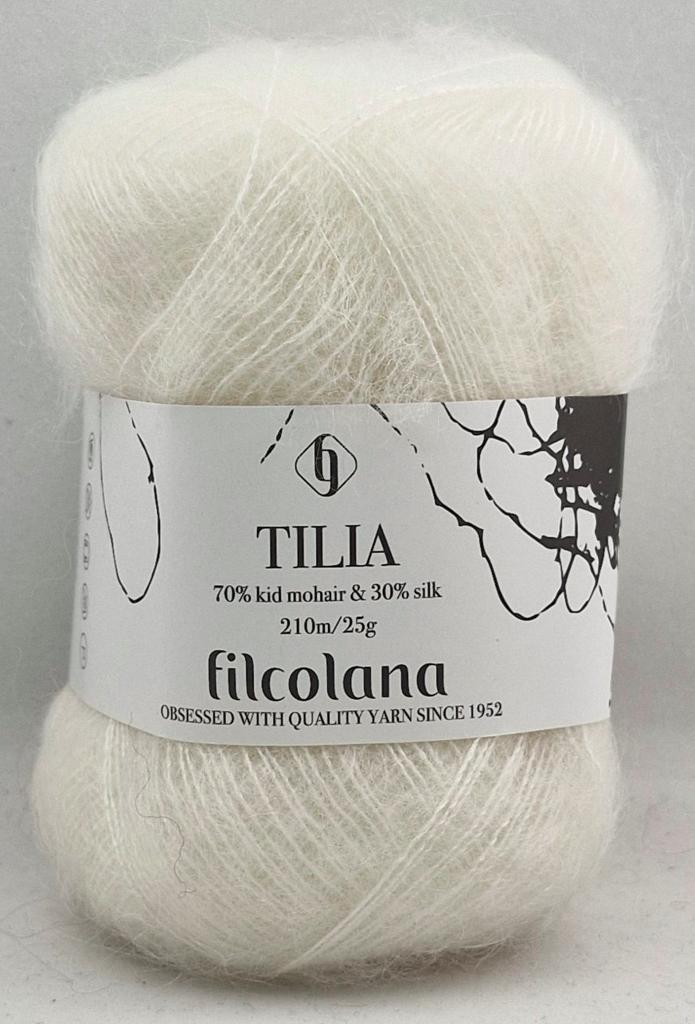 25g / 210m Filcolana Tilia on upea silkin ja mohairin sekoitus (70 % kid mohair, 30 % silkki), joka sopii ohuisiin huiveihin ja neuleisiin sellaisenaan tai yhdistettynä muihin lankoihin. Tilian sävyt sopivat hyvin yhteen Arwettan kanssa, ja näiden lankojen yhdistelmästä tulee lämmin neule, jonka pinta on mohairmaisen pörröinen ja siinä on hienoinen silkin kiilto.