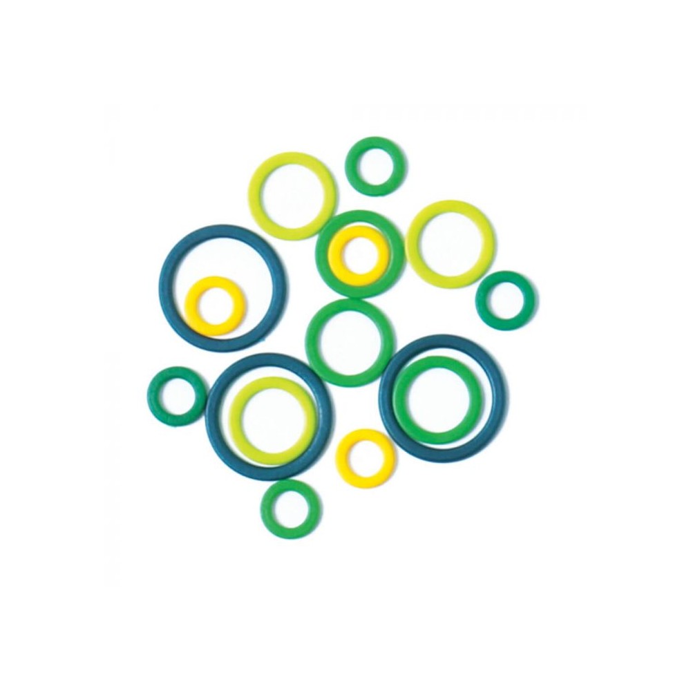KnitPron rengassilmukkamerkit ovat mainioita apuvälineitä, kun mm. lasketaan tai merkitään silmukoita. Renkaat asetetaan puikolle kahden silmukan väliin esimerkiksi merkitsemään kavennus- tai lisäyskohtaa. Renkailla voi kätevästi merkitä myös mm. kerroksenvaihtumiskohdan tai työn keskikohdan.