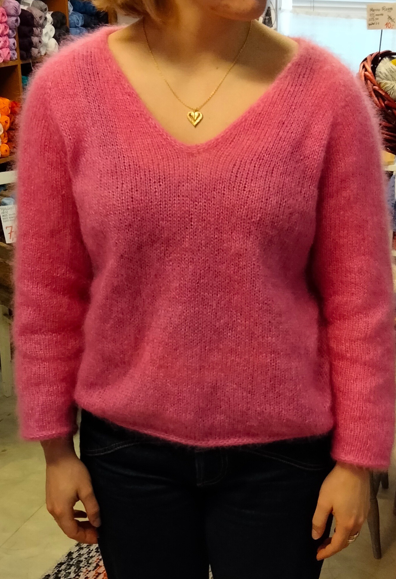 Lanka: 150 (175) 200 (200) 225 (225) 250 (250) 275 g Isager Yarn Silk Mohair (25 g = 212 m) tai Sandnes Garn Tynn Silk Mohair (25 g = 212 m) tai Mohair by Canard Brushed Lace (25 g = 210 m) tai Knitting for Olive Soft Silk Mohair (25 g = 225 m) tai Filcolana Tilia (25 g = 210 m).