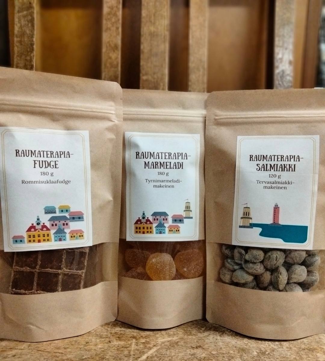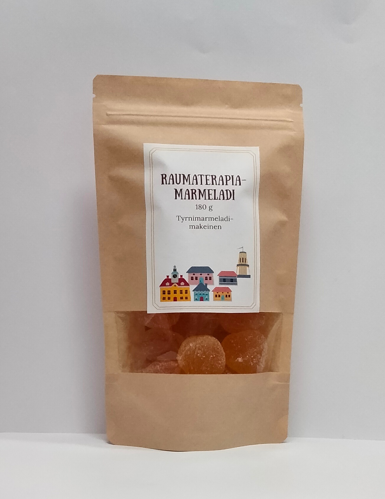 Miksi valitsimme myyntiin juuri tyrnin makuisen marmeladimakeisen? Siksi, että Rauma sijaitsee Satakunnassa, ja Satakunnan maakuntakukka on tyrni. Tyrniä kasvaa Raumallakin luonnonvaraisena.