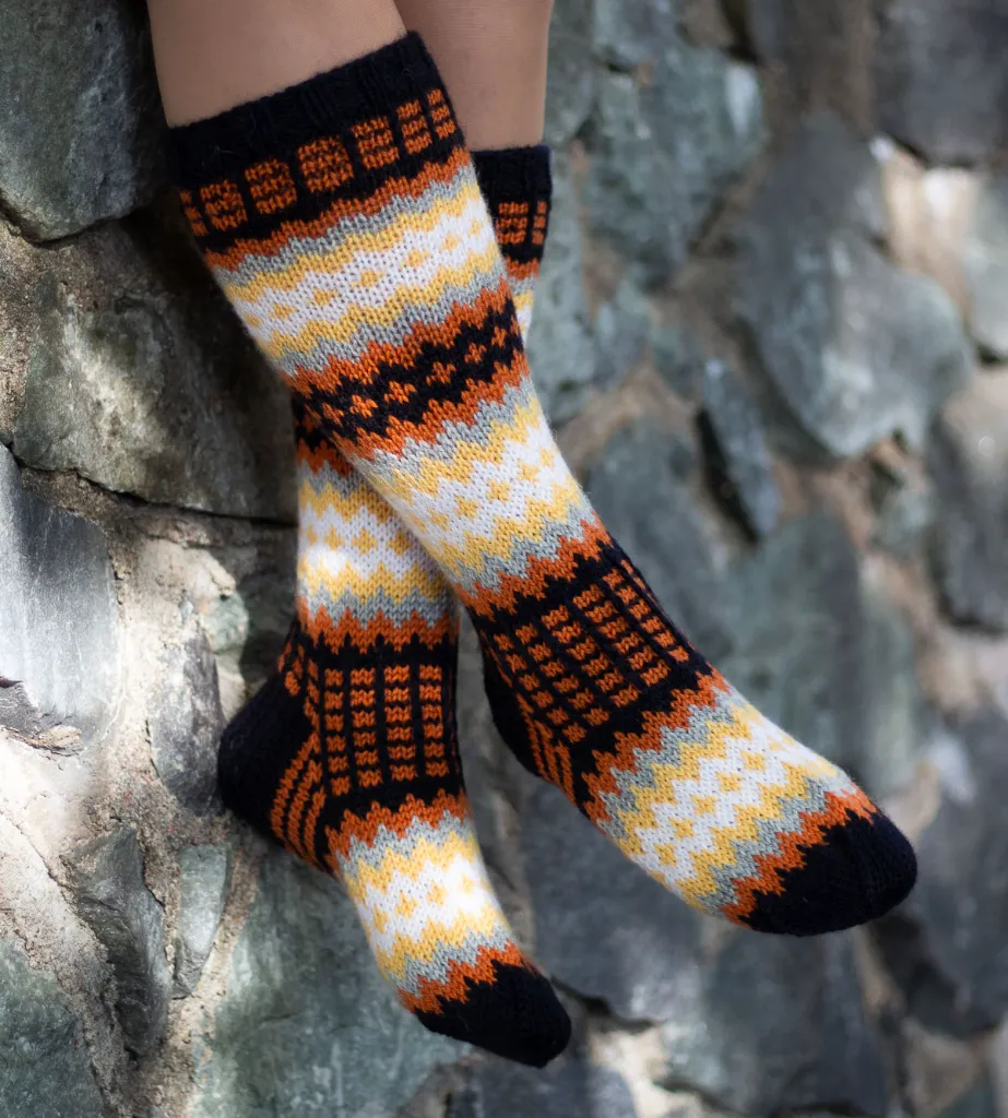Tarvikepaketti upeisiin kirjoneulesukkiin. Neulo itsellesi tai kaverille tai anna lahjaksi tekemiseniloa tarvikepaketin muodossa!